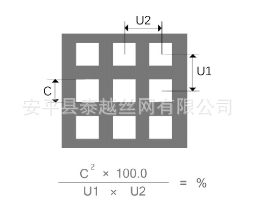 冲孔网开孔率指的是冲孔区与整张板之间的一个比例,常用百分比来表示。现在让我们用下面的规格来举例说明: